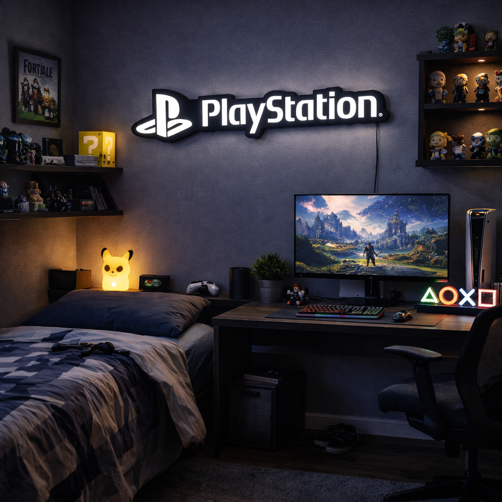 Leve o símbolo que marcou gerações de gamers para o seu ambiente com o Luminoso em LED - PlayStation Logo. Com design icônico e instantly reconhecível, ele transforma qualquer espaço em um verdadeiro setup gamer, transmitindo estilo, nostalgia e personalidade. Ideal para quartos gamers, setups de streaming, salas de jogos, estúdios, ambientes geek e espaços criativos. 🎮✨