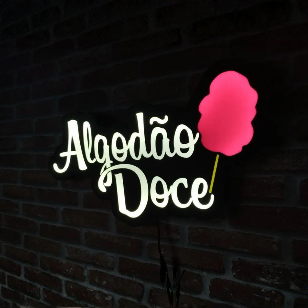 Deixe seu ambiente mais encantador e cheio de cor com o Luminoso em LED Algodão Doce. Com design moderno, divertido e delicado, ele é perfeito para quem deseja criar uma atmosfera alegre e convidativa em docerias, festas, buffets, carrinhos, lojas temáticas, eventos, espaços infantis e áreas criativas. 🍭✨