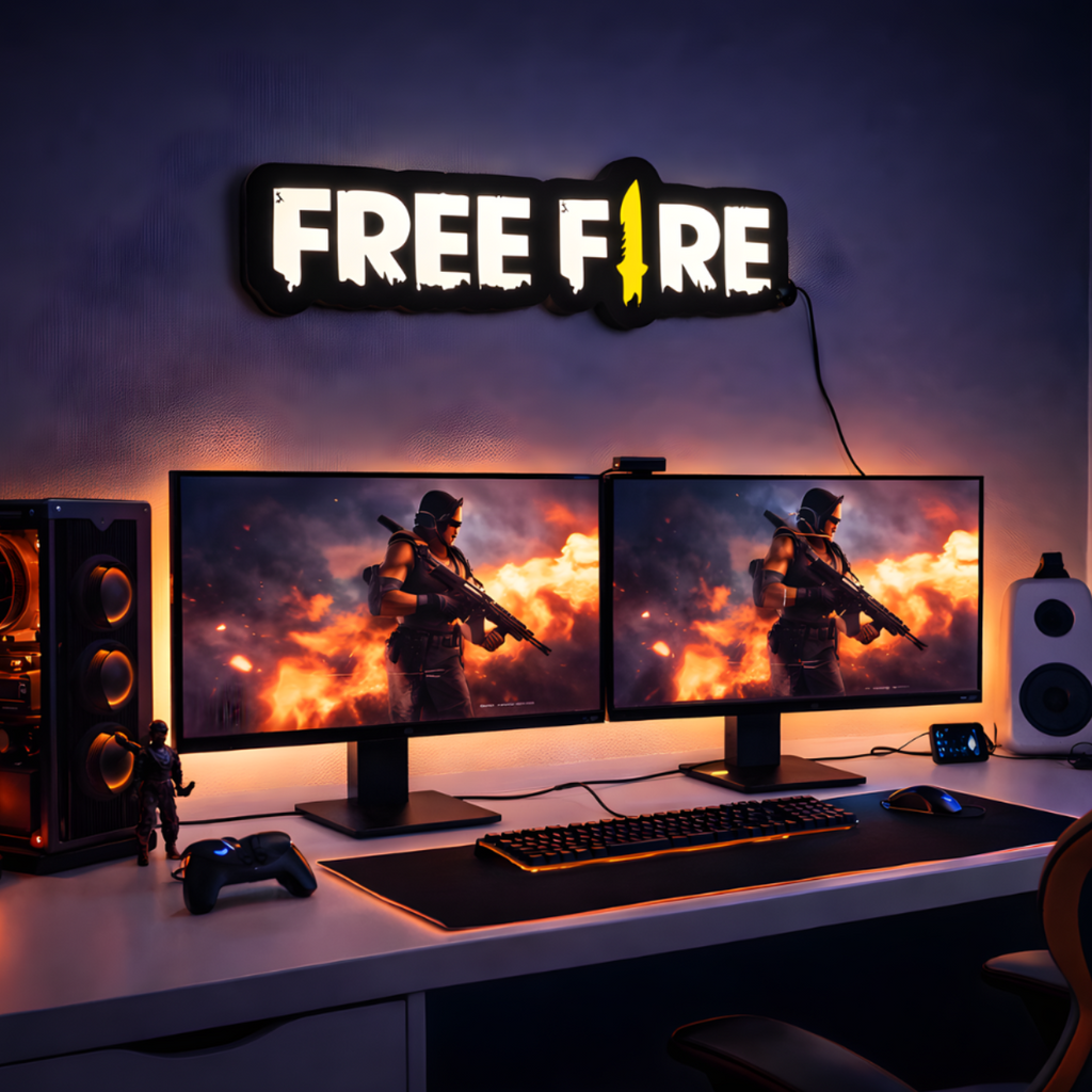 Leve a ação, a adrenalina e o visual marcante do Free Fire para o seu setup com o Luminoso em LED Free Fire. Inspirado em um dos battle royales mais populares do mundo, ele transforma qualquer ambiente em um verdadeiro espaço gamer, cheio de atitude, energia e personalidade. Ideal para quartos gamers, setups de streamers, salas de jogos, estúdios, áreas geek e ambientes criativos. 🔥🎮